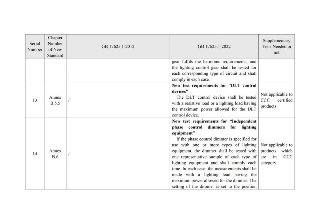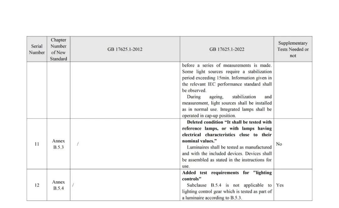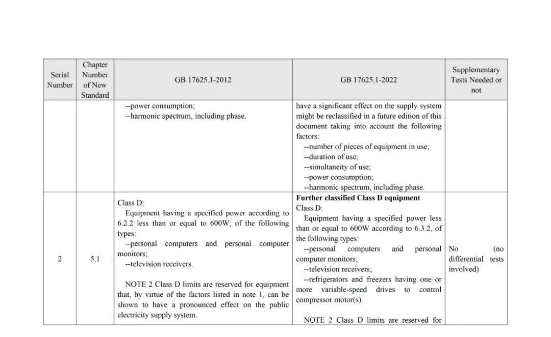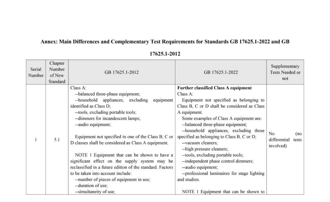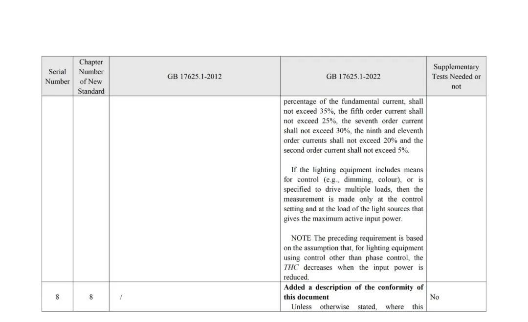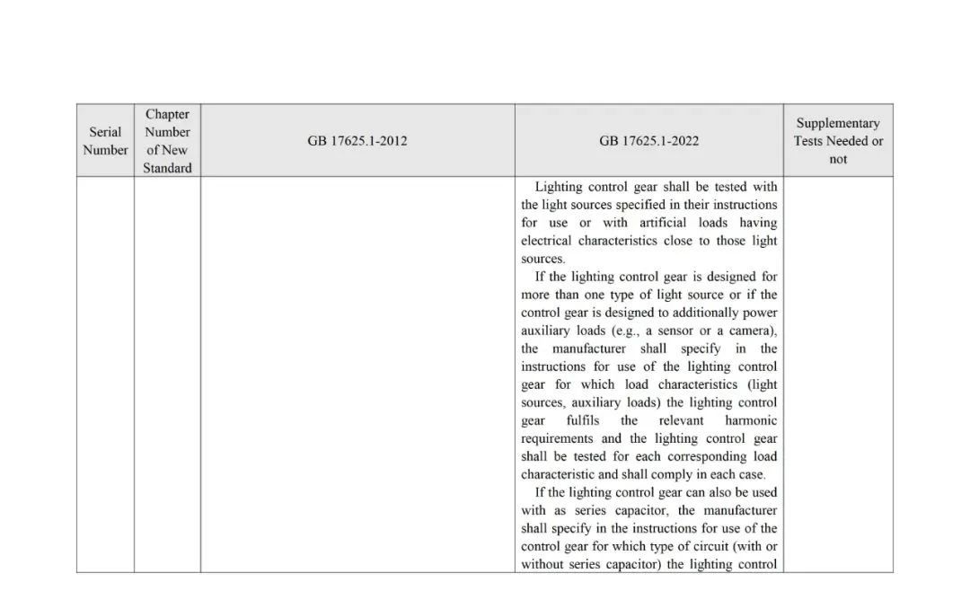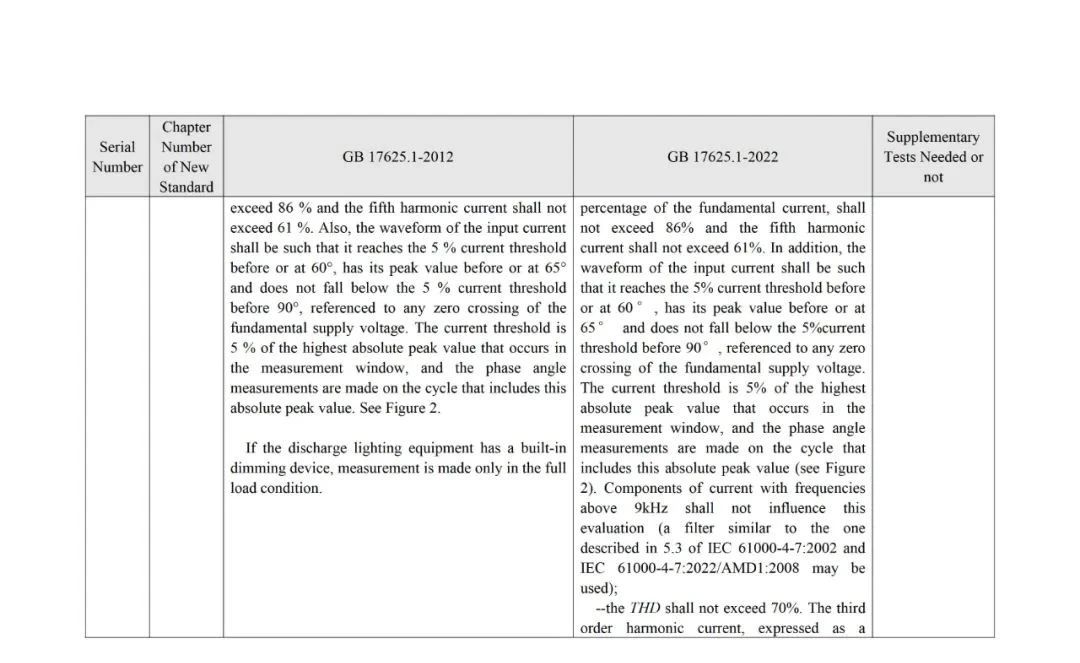 The analysis of standard differences by the members of the TC10 Expert Group resulted in the GB 17625.1-2022 and GB 17625.1-2012Main Differences and Complementary Test Requirements for Standards(see annex for details).